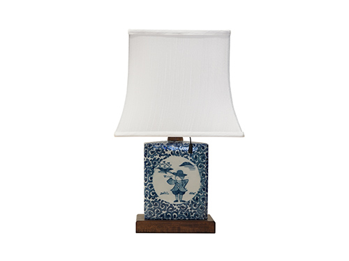 This table lamp is made with Seto sometsuke, a technique that originated in the Edo period. It depicts "nanbanjin," or "Southern Barbarians," a term referring to the Portuguese and Spanish who came to Japan from the end of the Muromachi period through the Edo period.