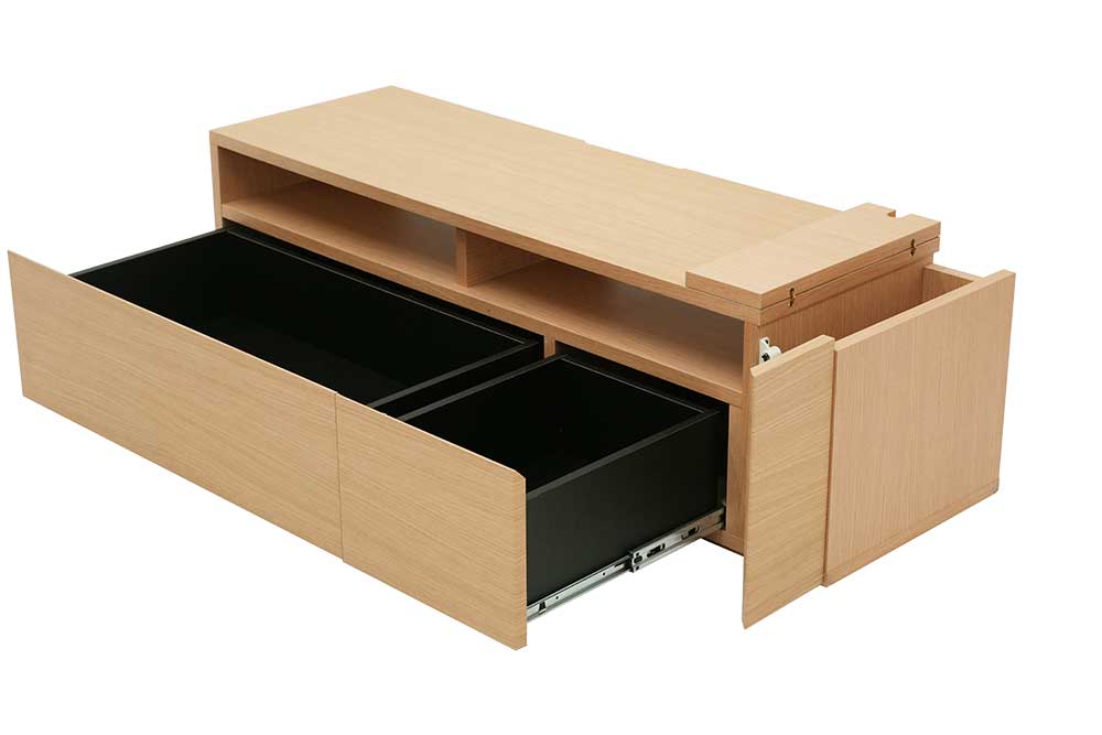 When there is a cover in the top plate right-side end and opens, it becomes the storage space of the outlet tap.