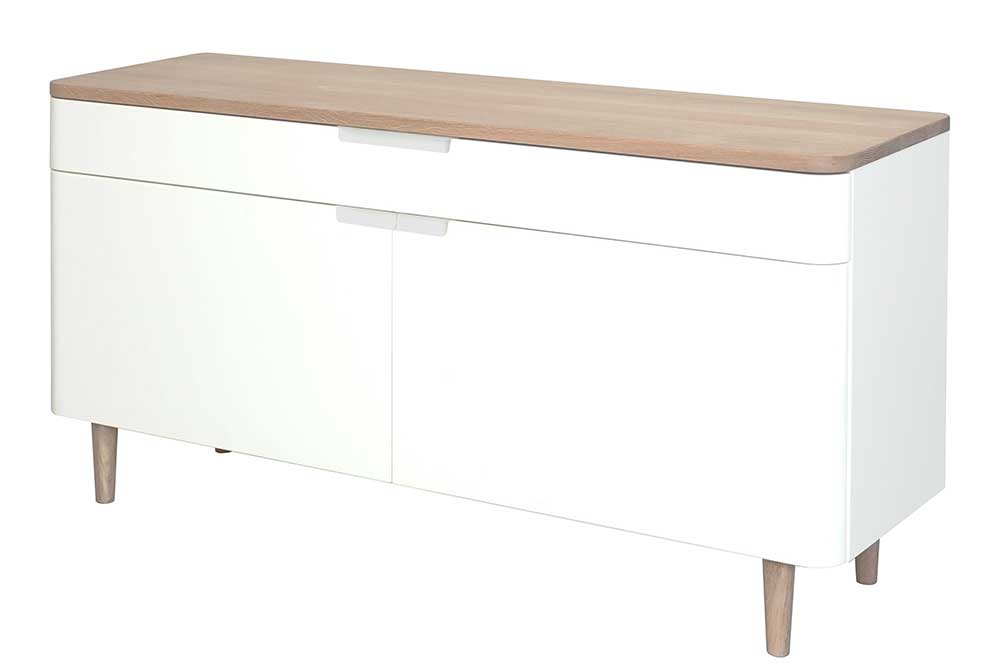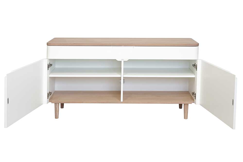 モダンでスタイリッシュな北欧デザイン。すっきりとした曲線、脚・ハンドルの繊細なディテールが上品ですっきりとした空間を演出します。引出しと扉つきの棚を組み合わせた、シンプルで機能性のあるサイドボードです。