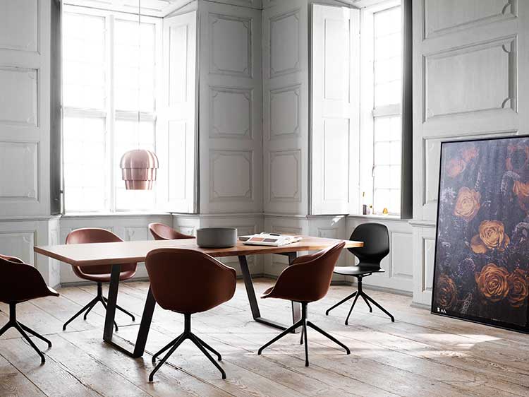 木製の天板と重厚な質感を持つVancouverは、自然で有機的な力強さを表現しています。大きな天板は大人数でもゆったりと座ることができ、ダイニングスペースに存在感を与えます。エレガントな金属製の脚は、重厚な天板と強いコントラストを生み出し、軽やかでありながら力強くエレガントな印象を与え、高級感と上品さを醸し出します。