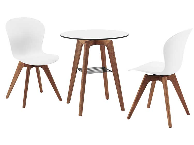 Create a stylish outdoor atmosphere with the modern Adelaide outdoor table. Solid eucalyptus legs and a very durable laminate table top make the table weather resistant and very easy to maintain while also giving the Adelaide a stylishness not often seen with outdoor furniture. With high legs and a shelf for storage, this outdoor café table is your stylish companion for outdoor dining, coffee with a friend or relaxing with a book.