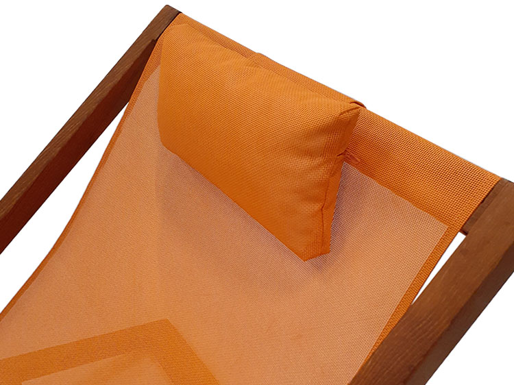 This folding deck chair is made of teak wood for a sturdy, stable and sturdy body. The PVC mesh material is easy to clean, and the pillow is removable.