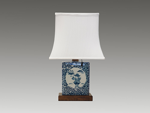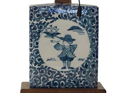 This table lamp is made with Seto sometsuke, a technique that originated in the Edo period. It depicts "nanbanjin," or "Southern Barbarians," a term referring to the Portuguese and Spanish who came to Japan from the end of the Muromachi period through the Edo period.