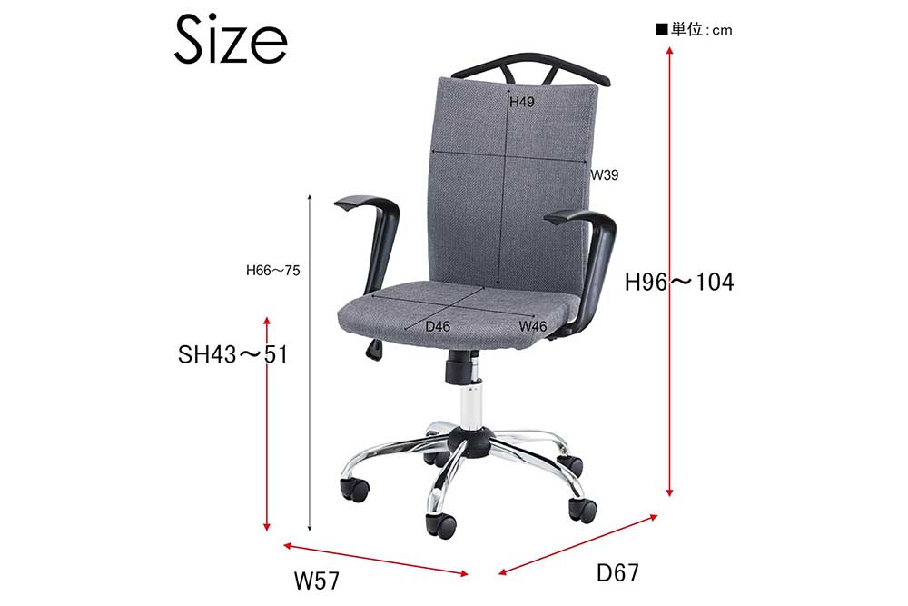 Size: W57 x D67 x H96-104 (SH43-51) cm
