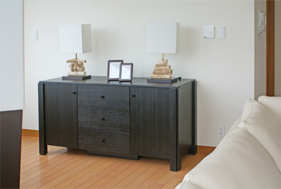 The subdued wenge color makes it look great when you decorate it with a photo or a vase.