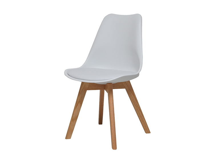 A white artificial leather cushion is attached to the seat, which fits well up to your back and is comfortable to sit on.