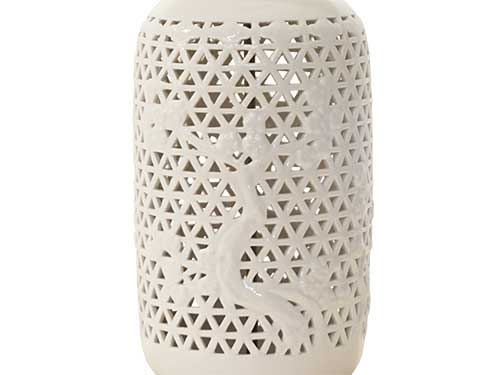 The combination of an openwork base and a simple shade gives this table lamp a neat and elegant impression.