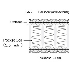 硬めのサポート感をお好みの方の開発されたハードタイプです。詰め物に頼らずコイルの硬さにのみで最適な硬さを実現しました。2枚のマットレスをマジックテープにより連結する仕様です。