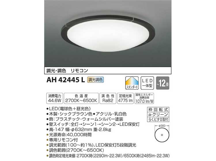 LED 44.6W  2700-6500K  Ra82  4775 lm  107.01 lm/W (交換不可)