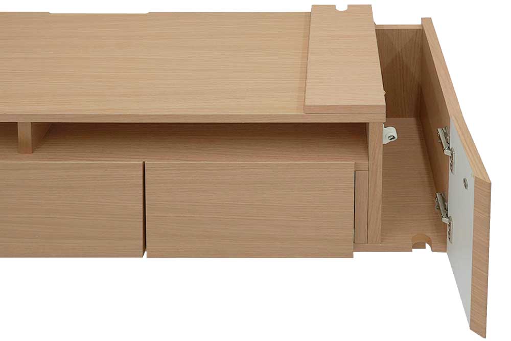 天板右端にカバーがあり、開くとコンセントタップの収納スペースになります。