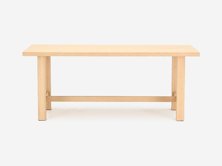 シンプルなデザインのフレームで作られたSLOW HOUSEを代表する「JARVI(ジャルビ)」。天板は厚みのある無垢のオーク材を繋いで作られ、経年美化が楽しみな逸品です。また天板の表面は、光沢をできるだけ抑えた無塗装に近い美しい仕上りになっています。
