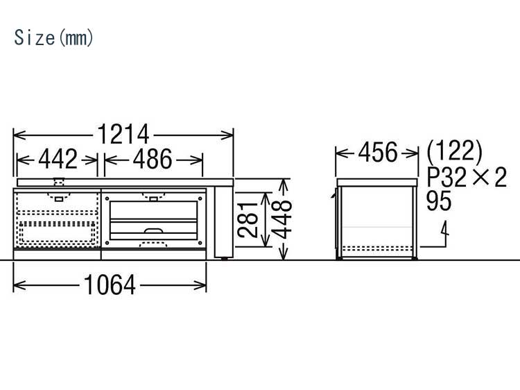 サイズ: 幅121.4 x 奥行45.6 x 高さ44.8 cm