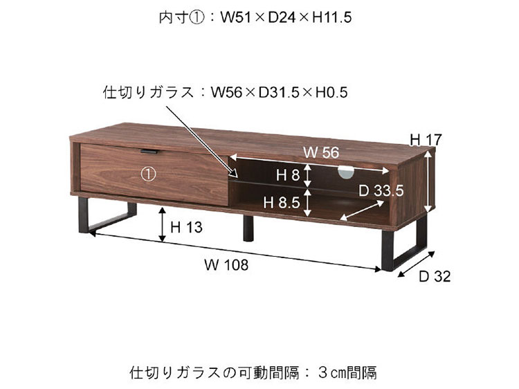 引出し x 1(内寸: 幅51 x 奥行24 x 高さ11.5 cm)