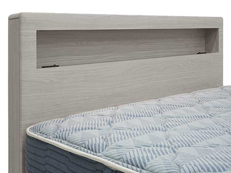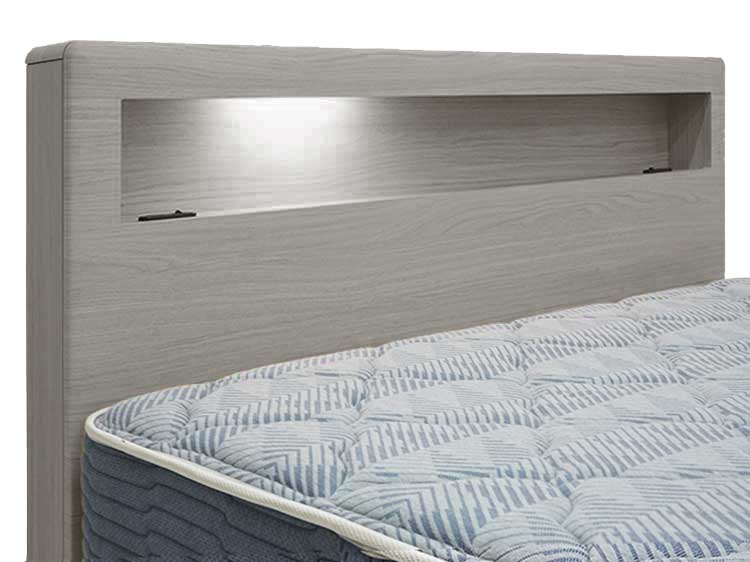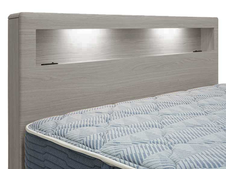 LEDライトを内蔵した棚スペースやスマートフォンなどの充電に便利なコンセントも付いています。