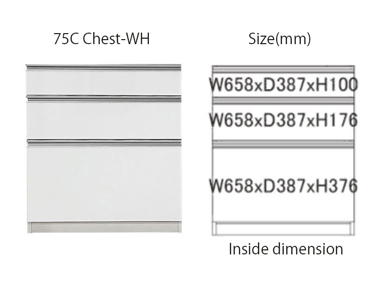 サイズ: 幅75 x 奥行47 x 高さ89.5 cm