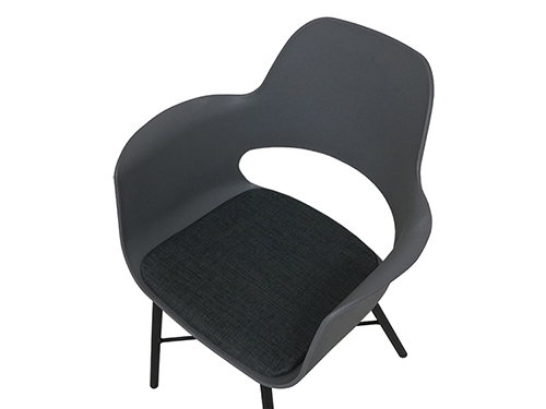 座面に取り付けられたグレーのクッションには十分なパッドが入っており、背もたれとアームの位置が高いので快適な座り心地です。ダイニングルームのみならずリビングルームでもご使用いただけます。